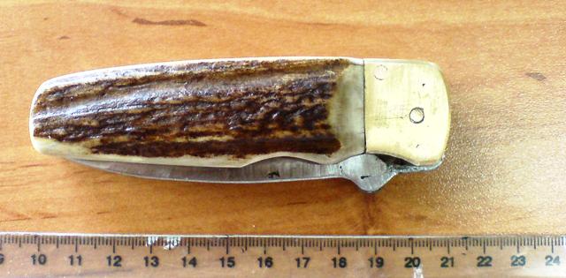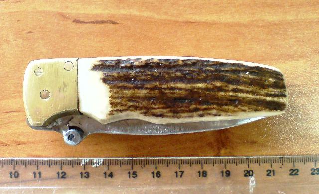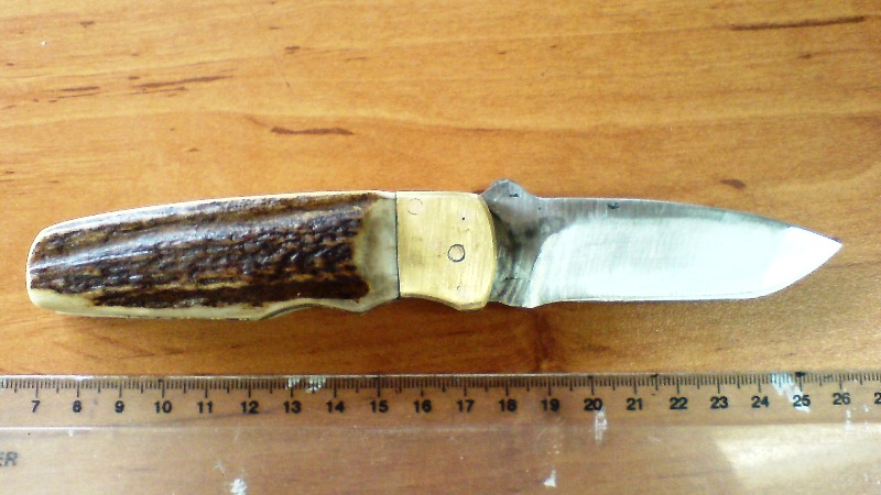 تيغه hss دسته از شاخ گوزن و قطعات لايه برنج و استيل .شايد زاجكاريش كنم و سياه بشه مثل تاريكي شب!