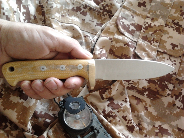 این هم اتمام کار ساخت کارد شکاری دسته فایبرگلس ضامن برنجی رو با دوتا پین برنجی و سوراخ کردن تیغه وصل کردم که یکی از پینها در تصویر سوم با کمی دقت قابل مشاهده ست